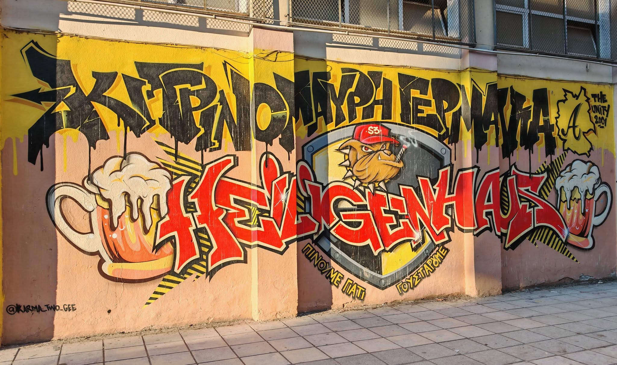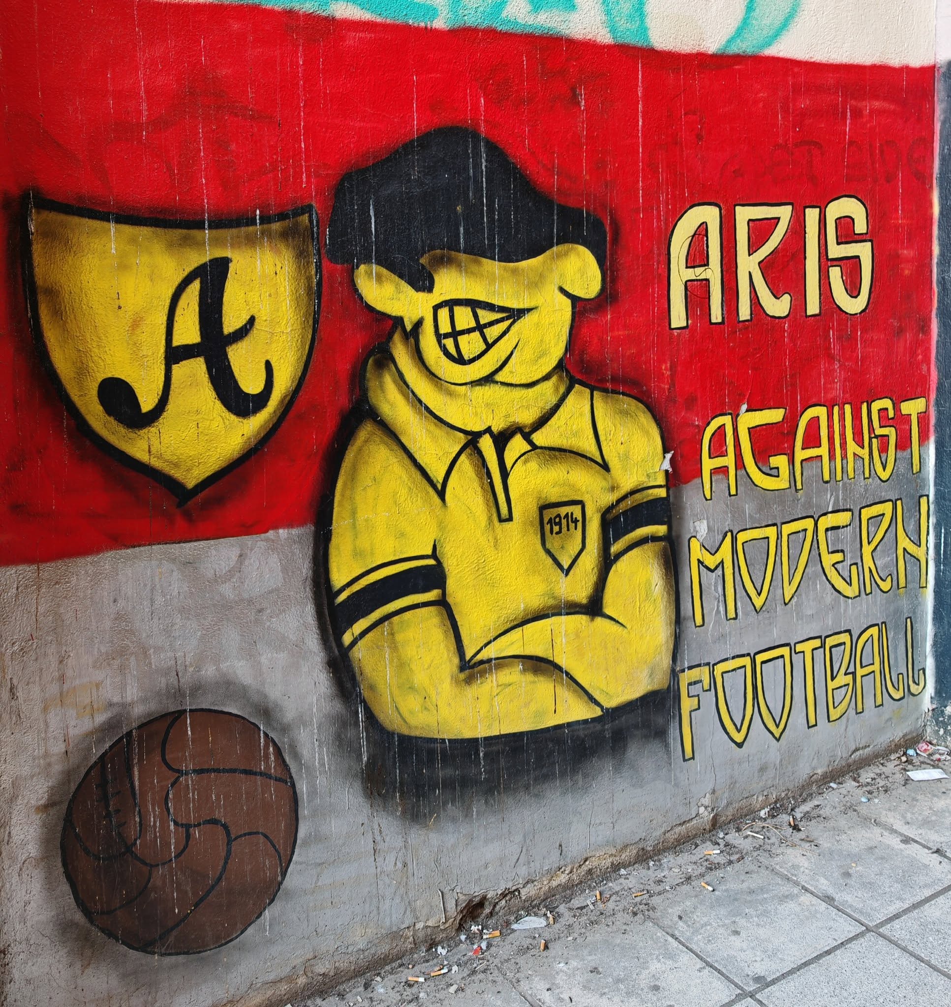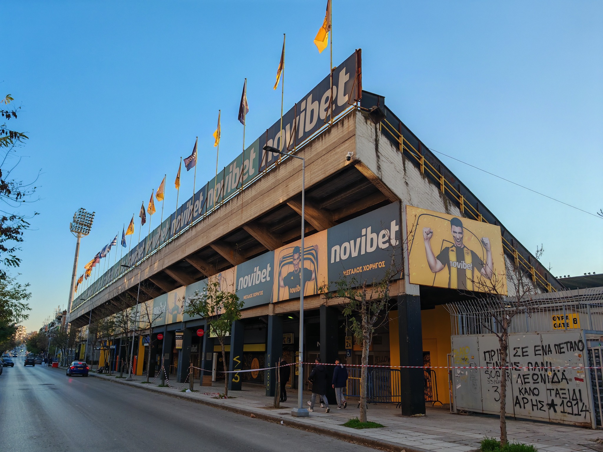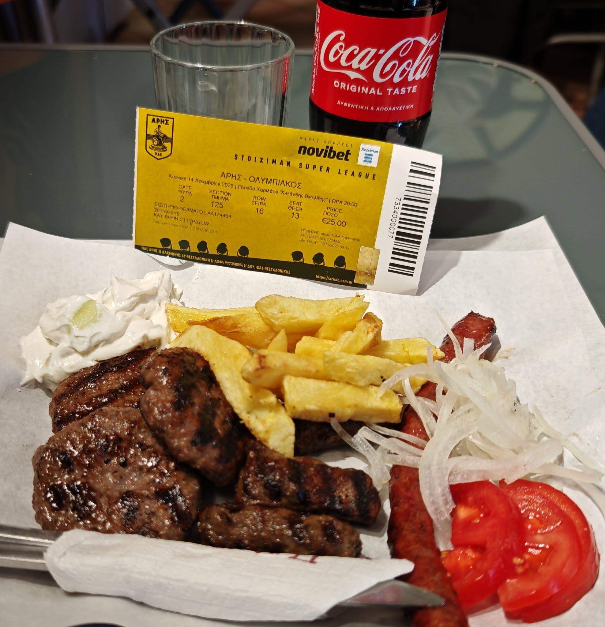 Vom Flughafen fuhr ich mit dem Shuttle Bus in die Stadt und sprang direkt am Stadion von Aris raus. Freundlicherweise war der Aris Fanshop vorab per Telefonat und Mail sehr behilflich bei der Ticketbeschaffung. Online war dieses bereits bezahlt, ich musste nur noch persönlich auftauchen und meinen Ausweis vorzeigen und schon gab tatsächlich einen richtig ausgedrucktes Ticket. Das nenn ich mal Service!