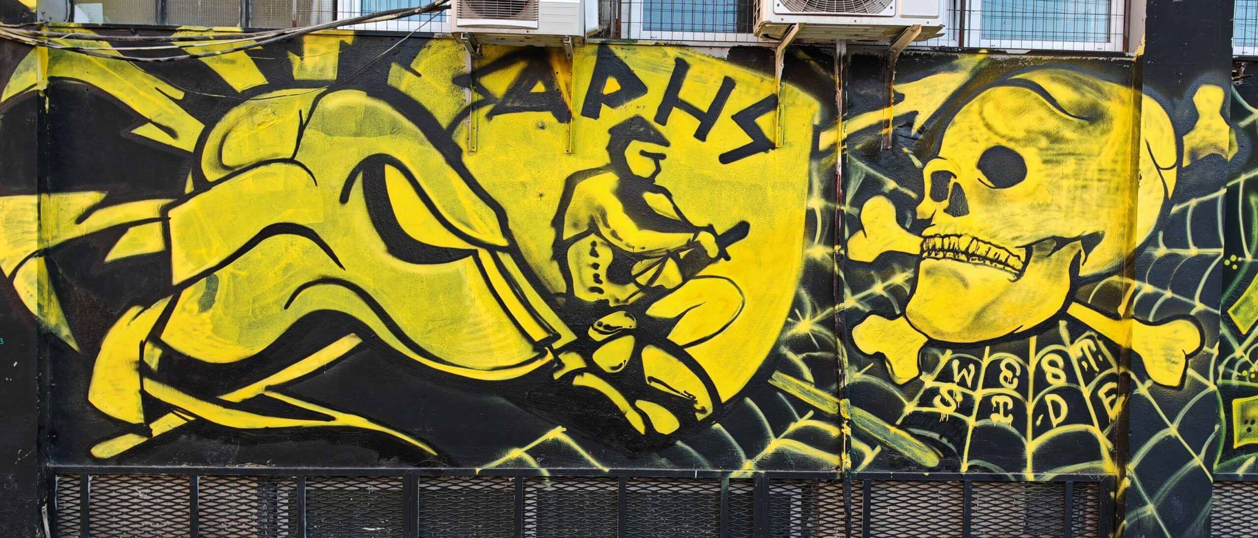 Dazu gibt es auch noch zwei Fankurven, jeweils hinter den Toren, wobei die eine zur Zeit wohl eher unerheblich ist mit seinen 20-30 Mann. Kaum zu hören und dann singt man auch noch gegeneinander an. Das kann man wohl eher als durchwachsene Stimmung bezeichnen, erst recht wenn man weiß wie Griechen sonst so ausrasten können.