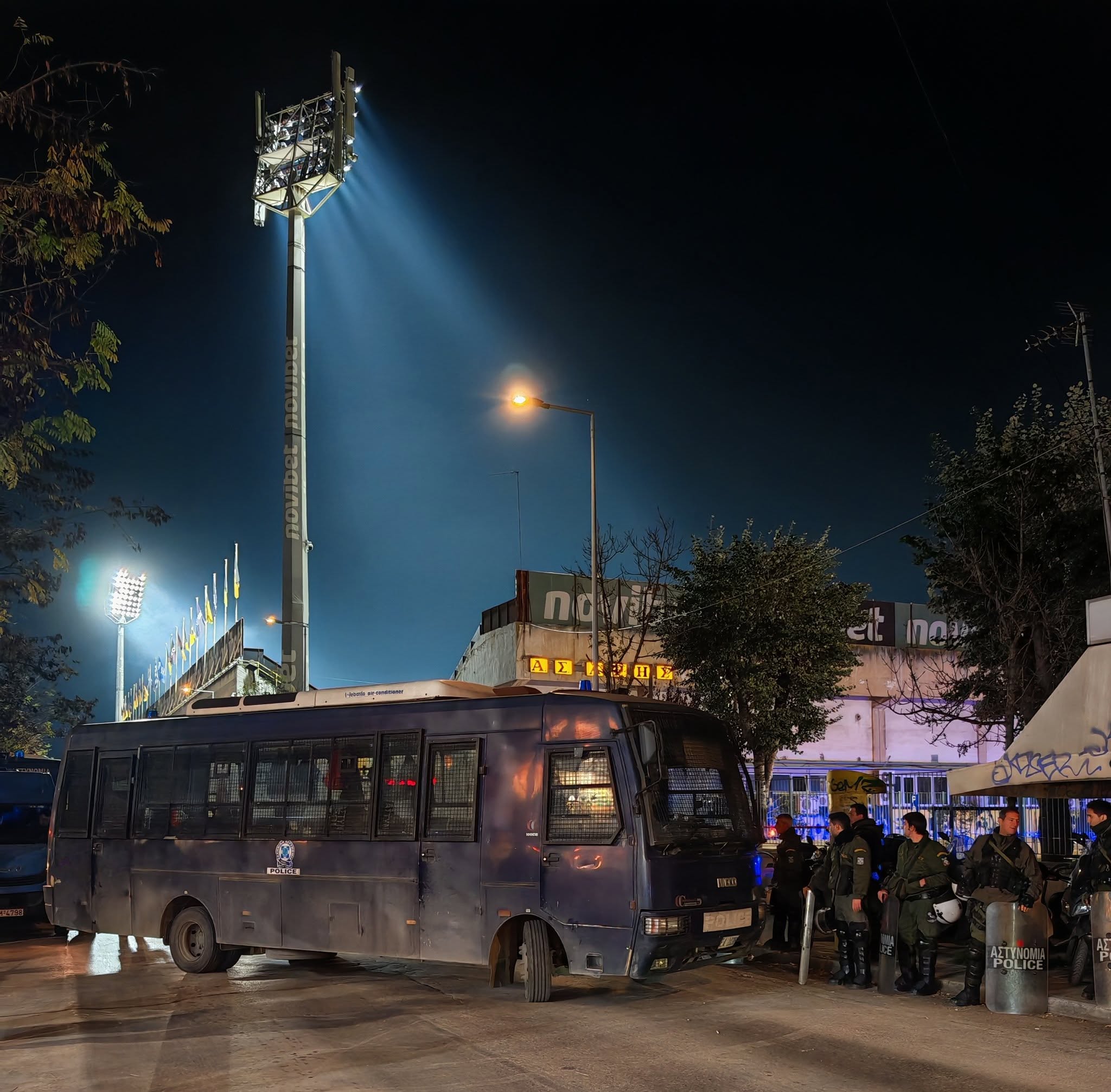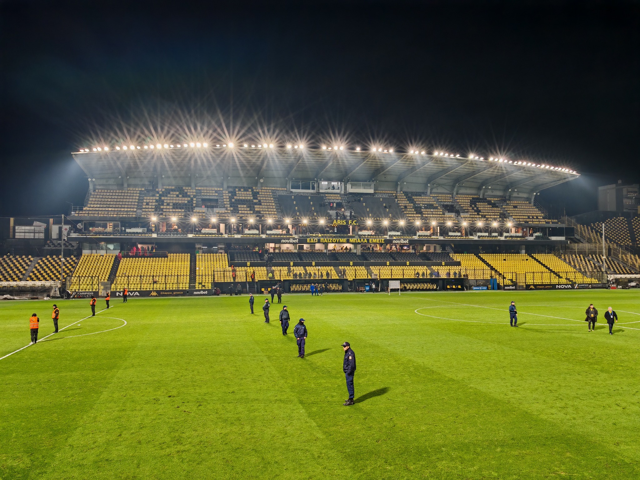 Mit Olympiacos war einer der größten und erfolgreichsten Clubs des Landes zu Gast der außerdem als Tabellenführer anreiste. Leider sind, zumindest beim Aufeinandertreffen der Schwergewichte, im griechischen Fußball Gästefans nicht zugelassen. Somit bleibt es auch für die Ordnungskräfte eher entspannt.