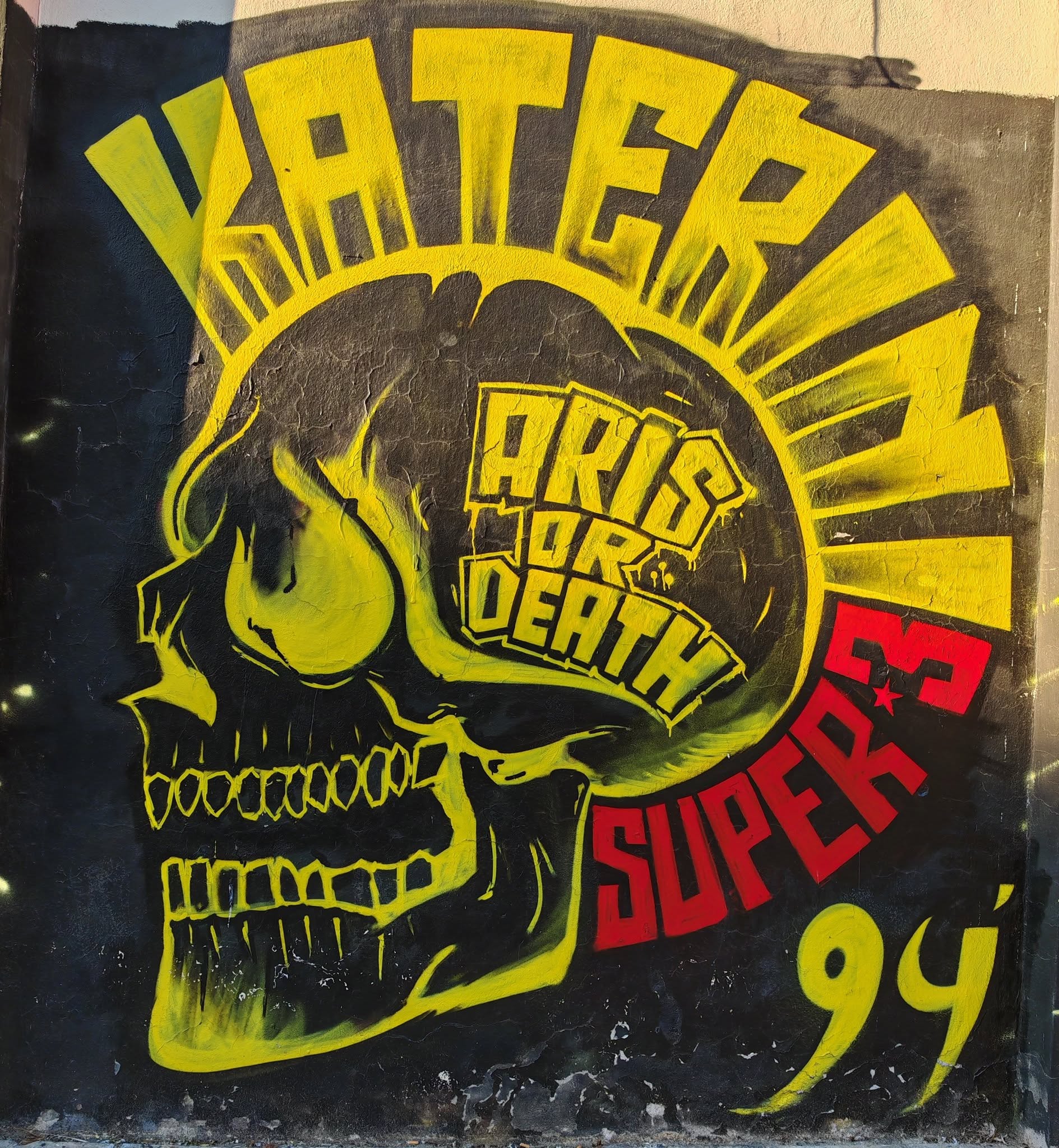 Doch nur 10 Minuten später holte sich Aris eine glatt rote Karte ab und somit war es auf dem Platz wieder ausgeglichen. Selbstverständlich blieb es beim typischen torlosen Rammelkick. Einen griechischen Torjubel gab es nicht zu bestaunen. Hätte ich gerne gesehen, denn es wurde ganz gut supportet aber eben auch keine Bäume ausgerissen.
